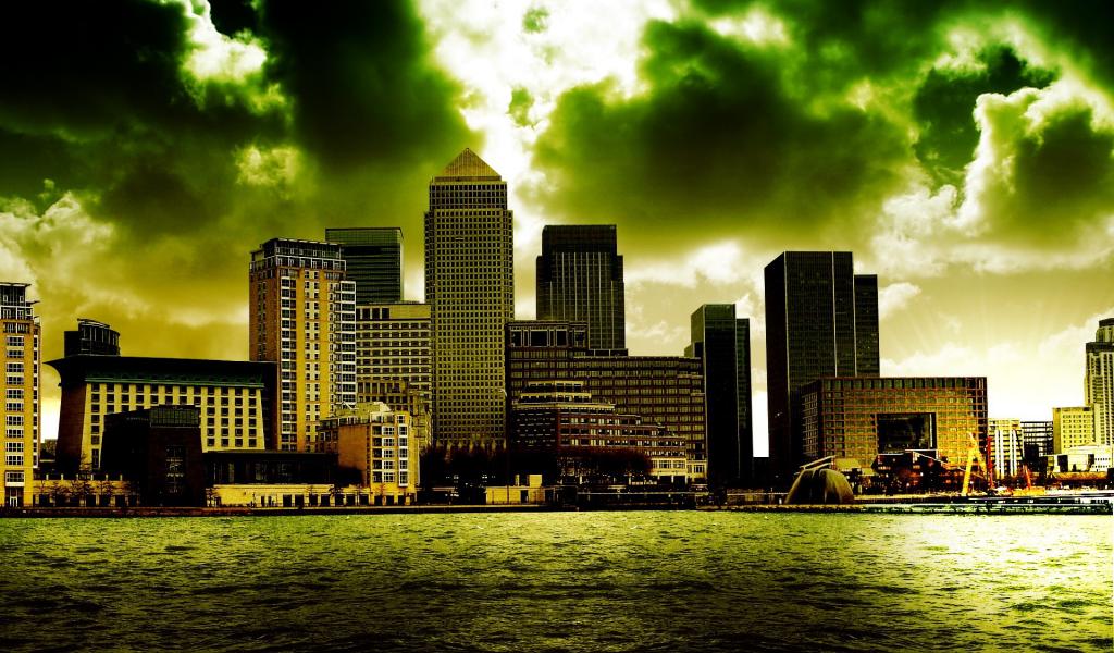 Wallpaper Megapolis under the green clouds