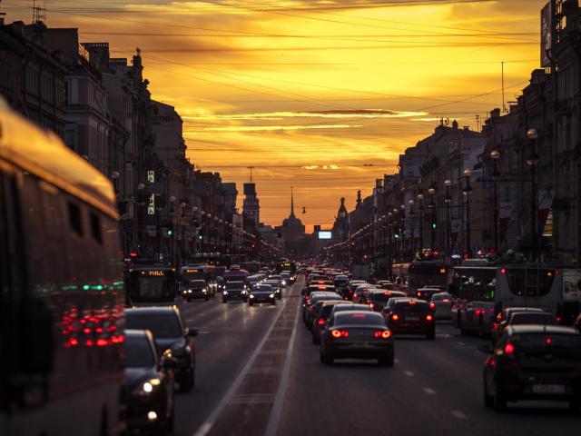 Wallpaper Evening traffic on city streets