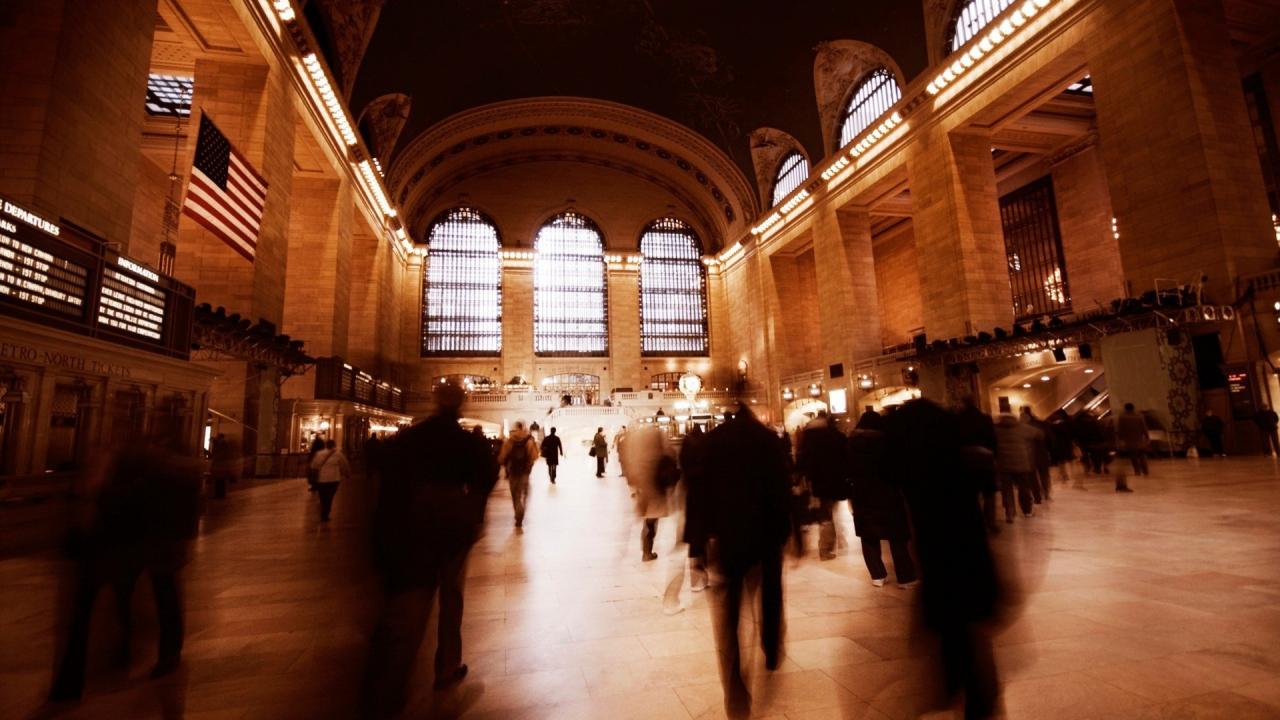 Wallpaper Silhouettes of people on the train station in New York City