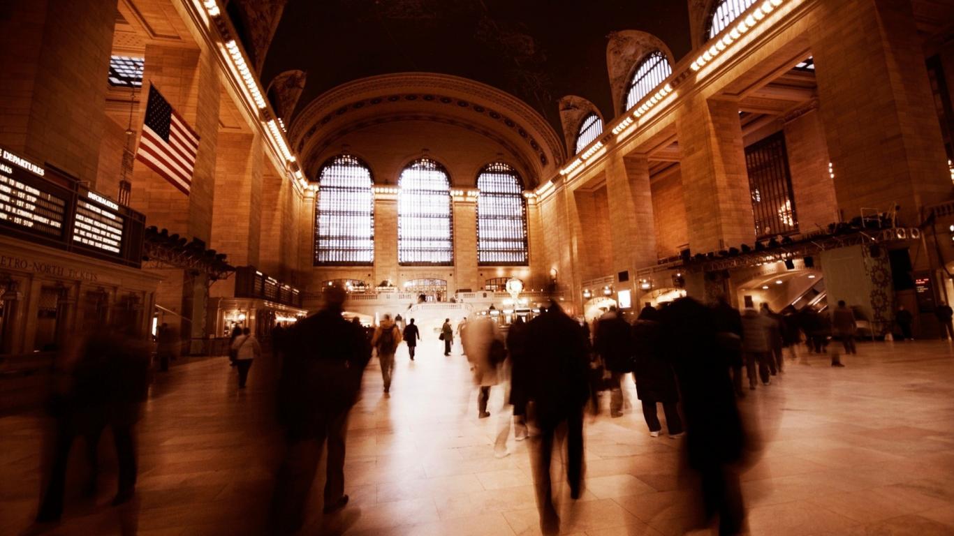 Wallpaper Silhouettes of people on the train station in New York City