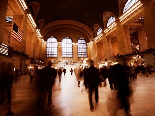 Wallpaper Silhouettes of people on the train station in New York City