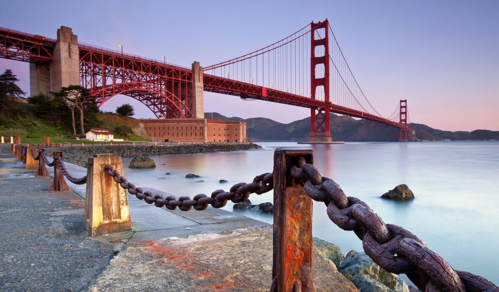 Wallpaper Chains on the promenade in front of the Golden Gate Bridge