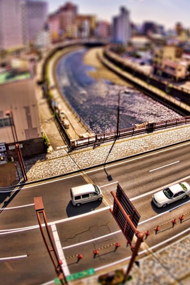 Wallpaper Cars on a bridge over the river in the city