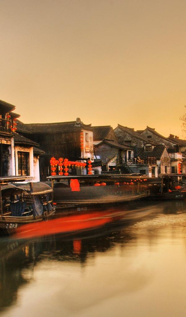 Wallpaper Boat at the pier in the Chinese town