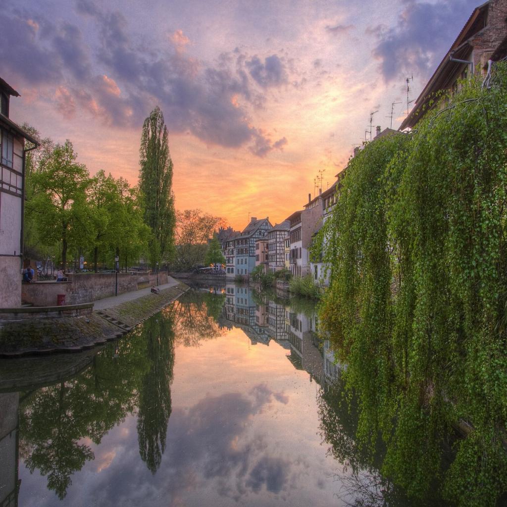 Wallpaper Green tree hangs up water channel