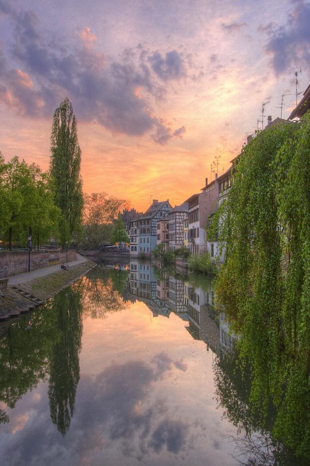 Wallpaper Green tree hangs up water channel