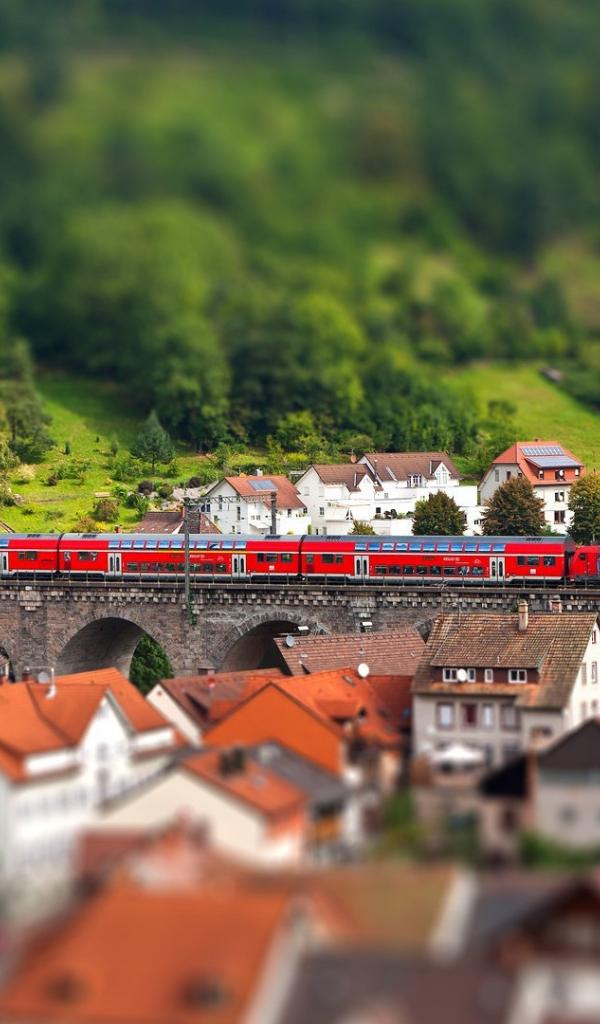 Wallpaper Red train on a bridge