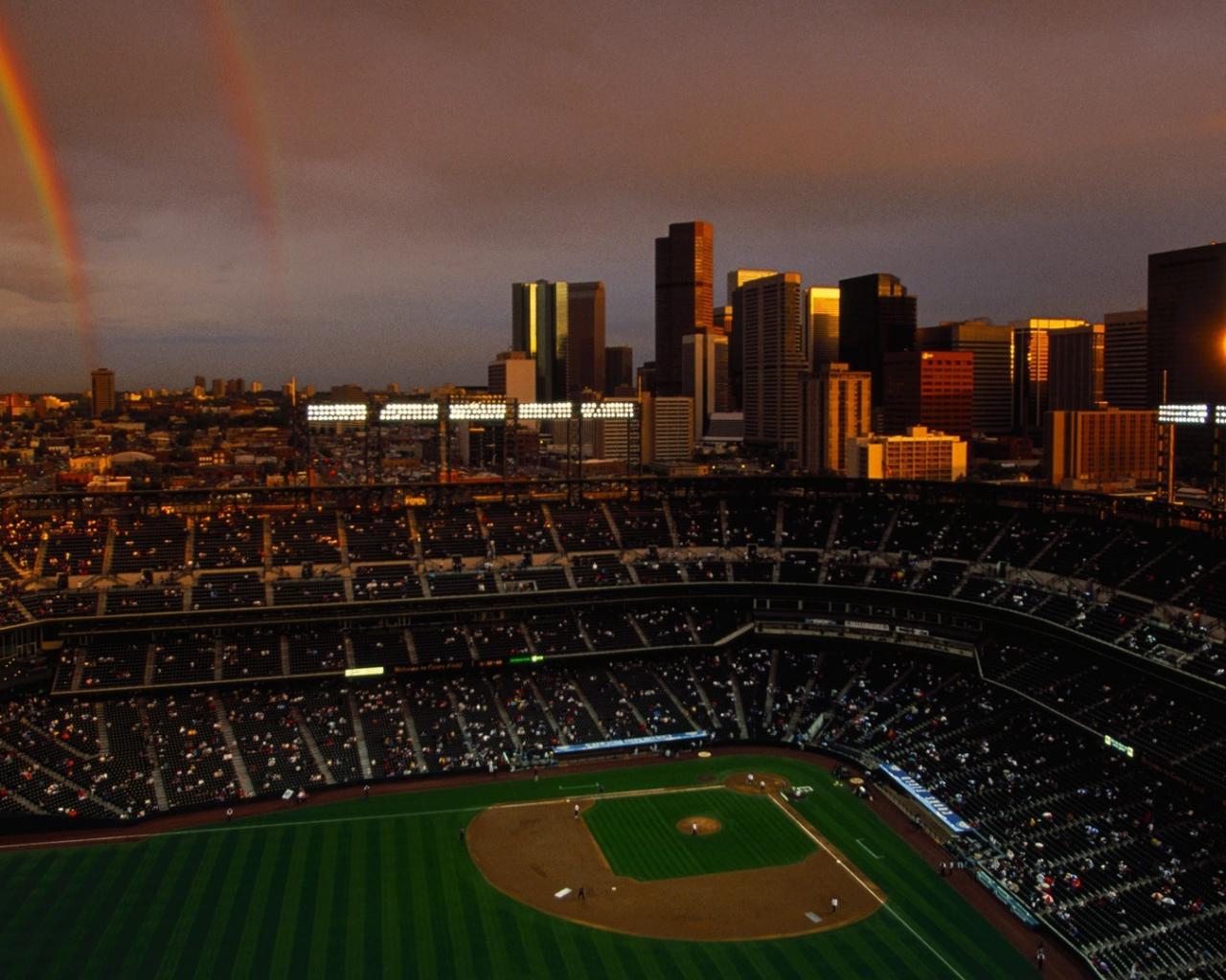 Wallpaper Double rainbow over the Ballpark