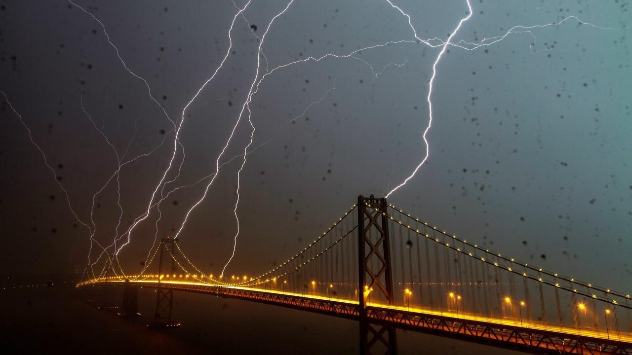 Wallpaper Lightning strikes Bay Bridge in San Francisco