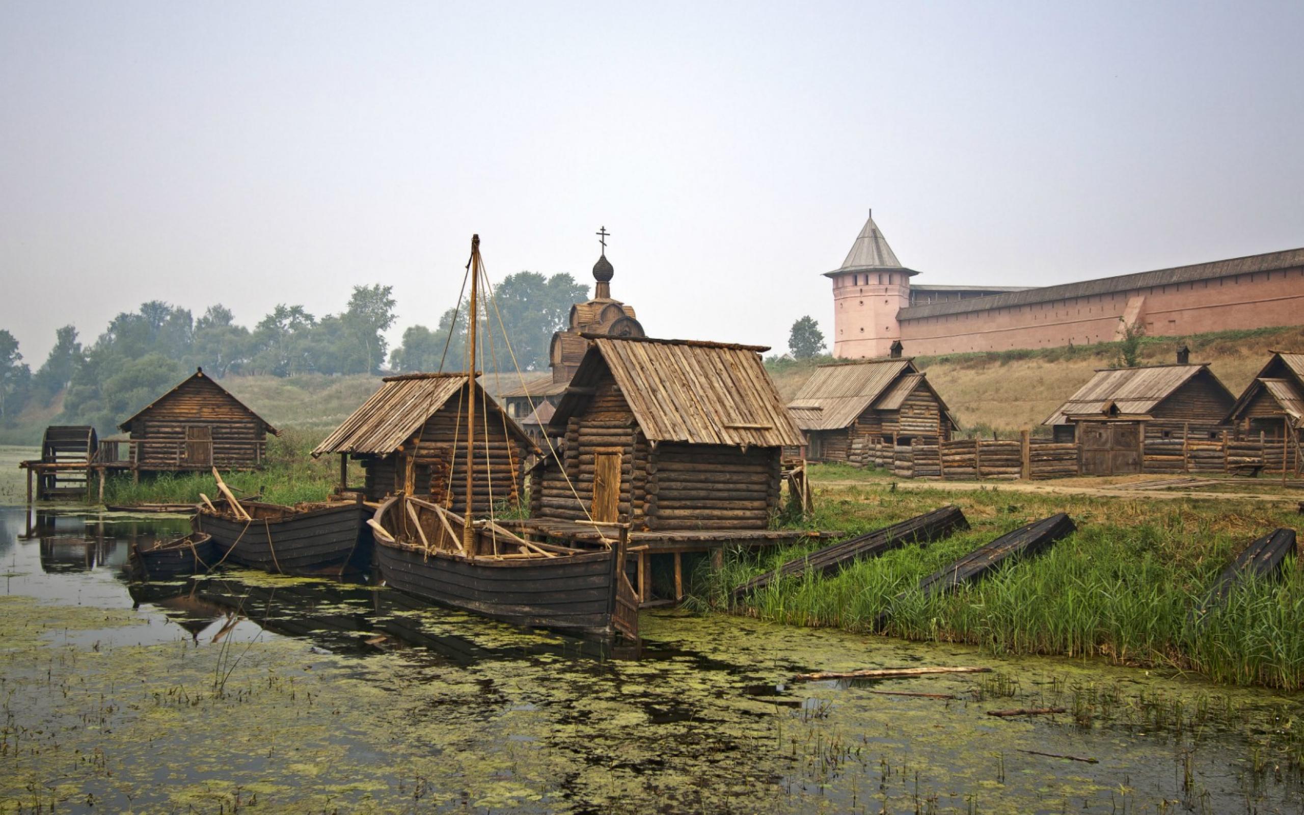 Wallpaper Dock for boats in Suzdal, Russia