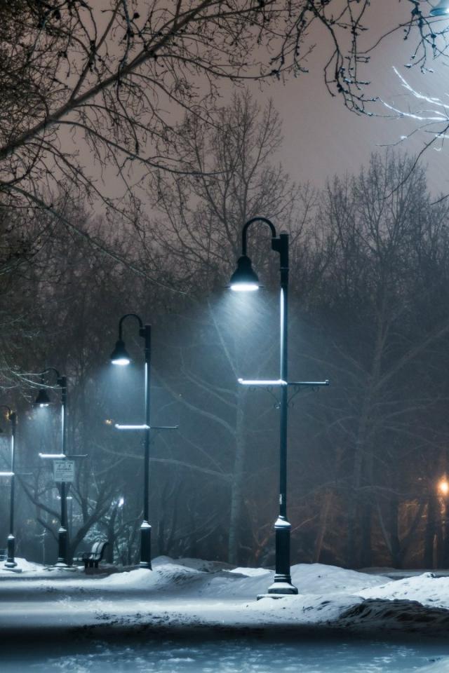 Wallpaper Night alley in winter park