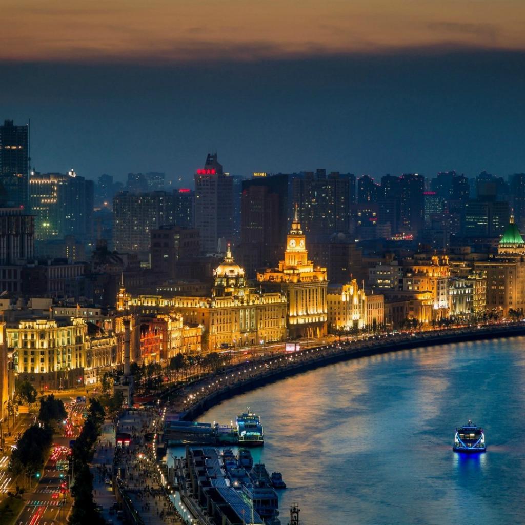 Wallpaper Night city of Shanghai in China