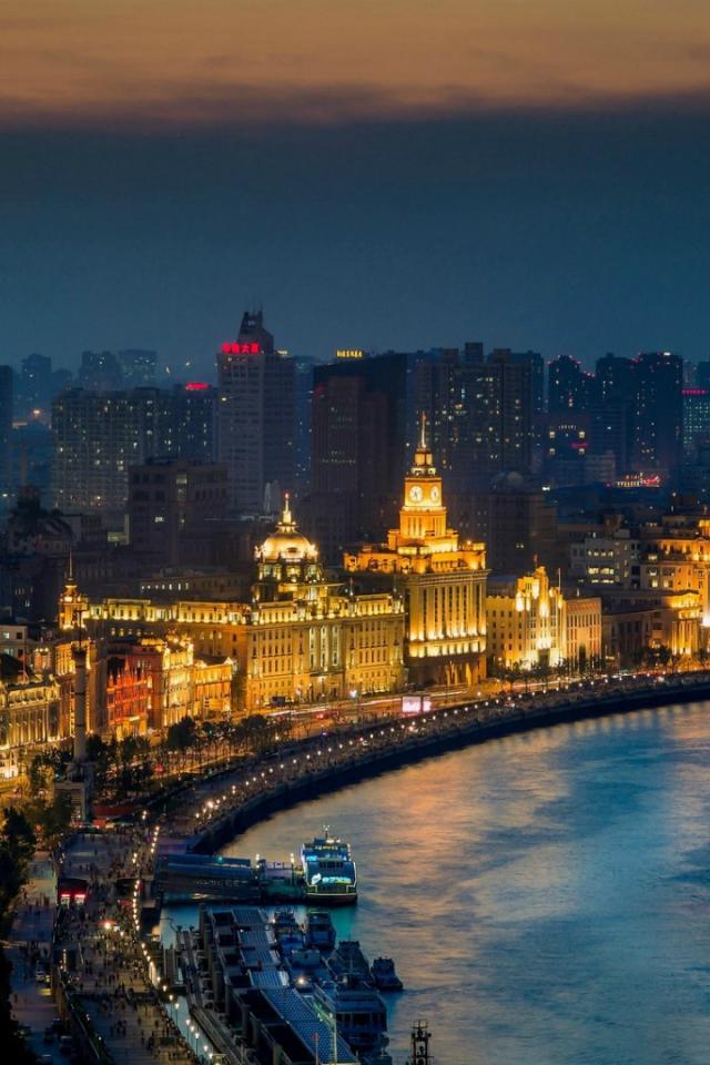 Wallpaper Night city of Shanghai in China