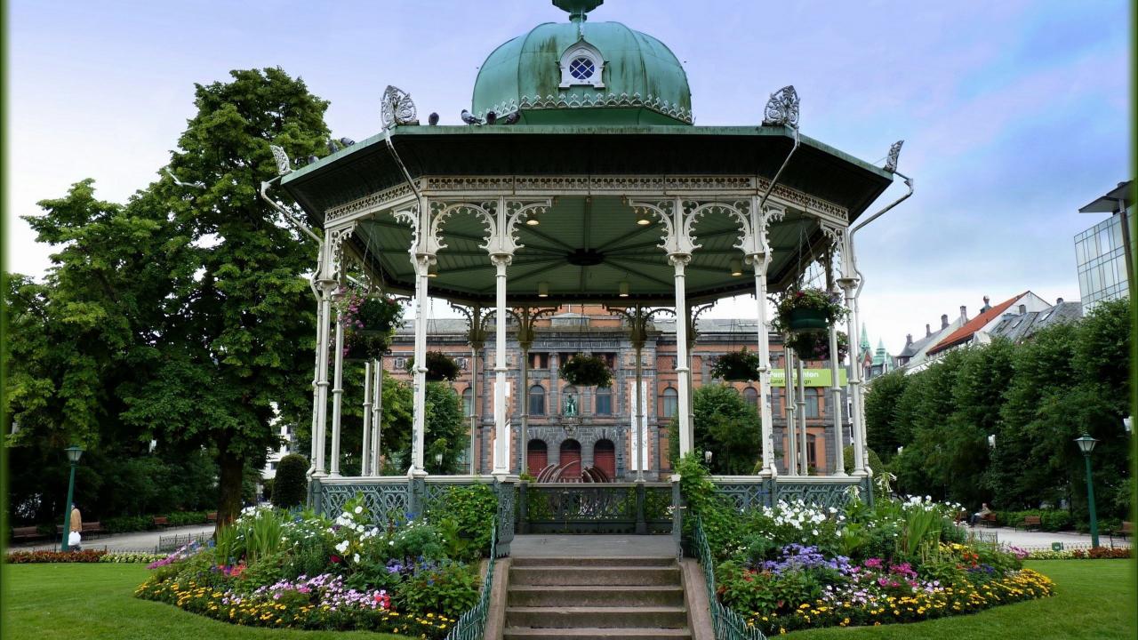 » Wallpaper Carved wooden gazebo in the park