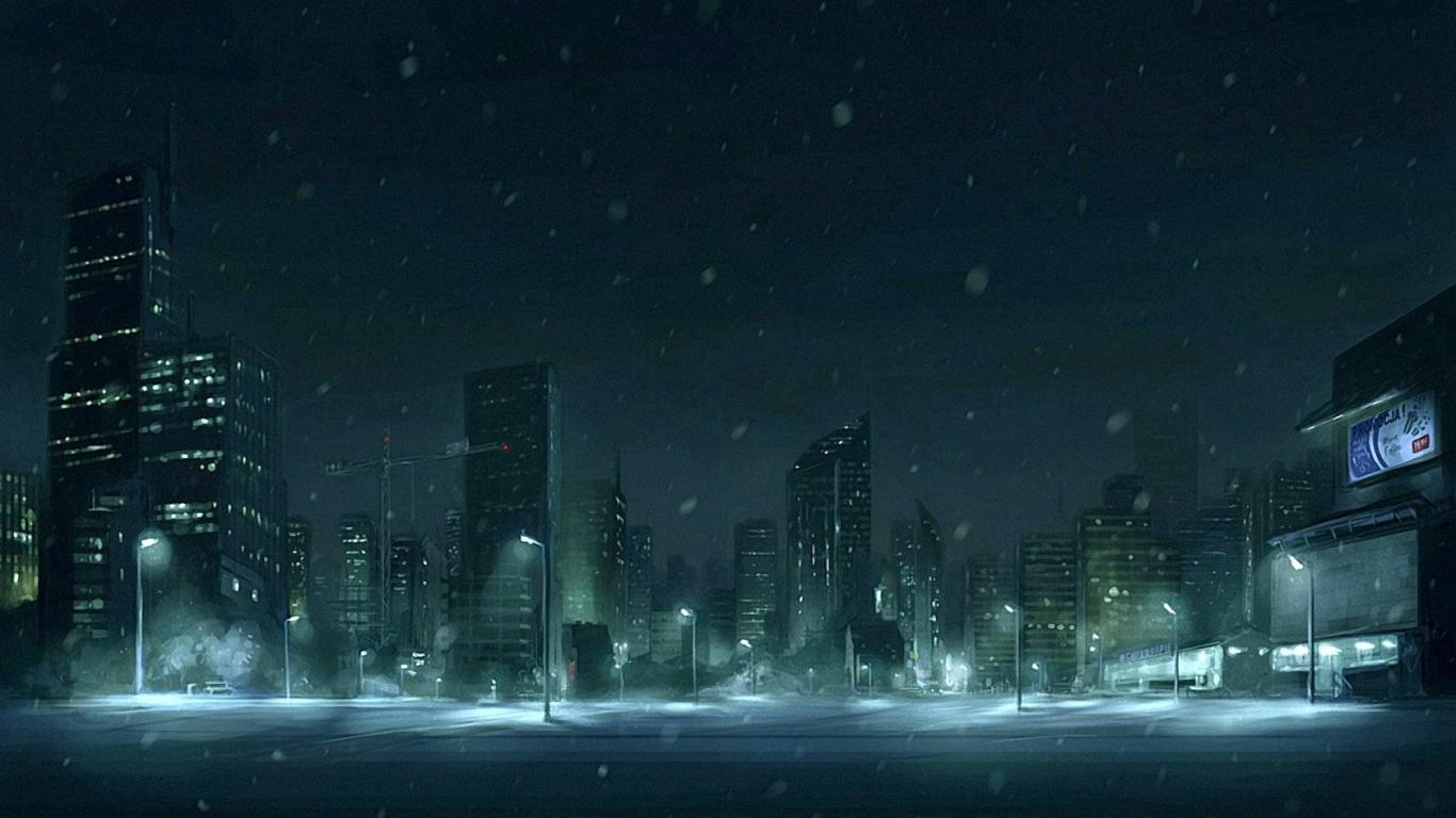 Wallpaper Snow in the night city