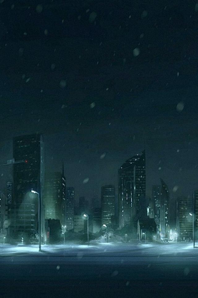 Wallpaper Snow in the night city