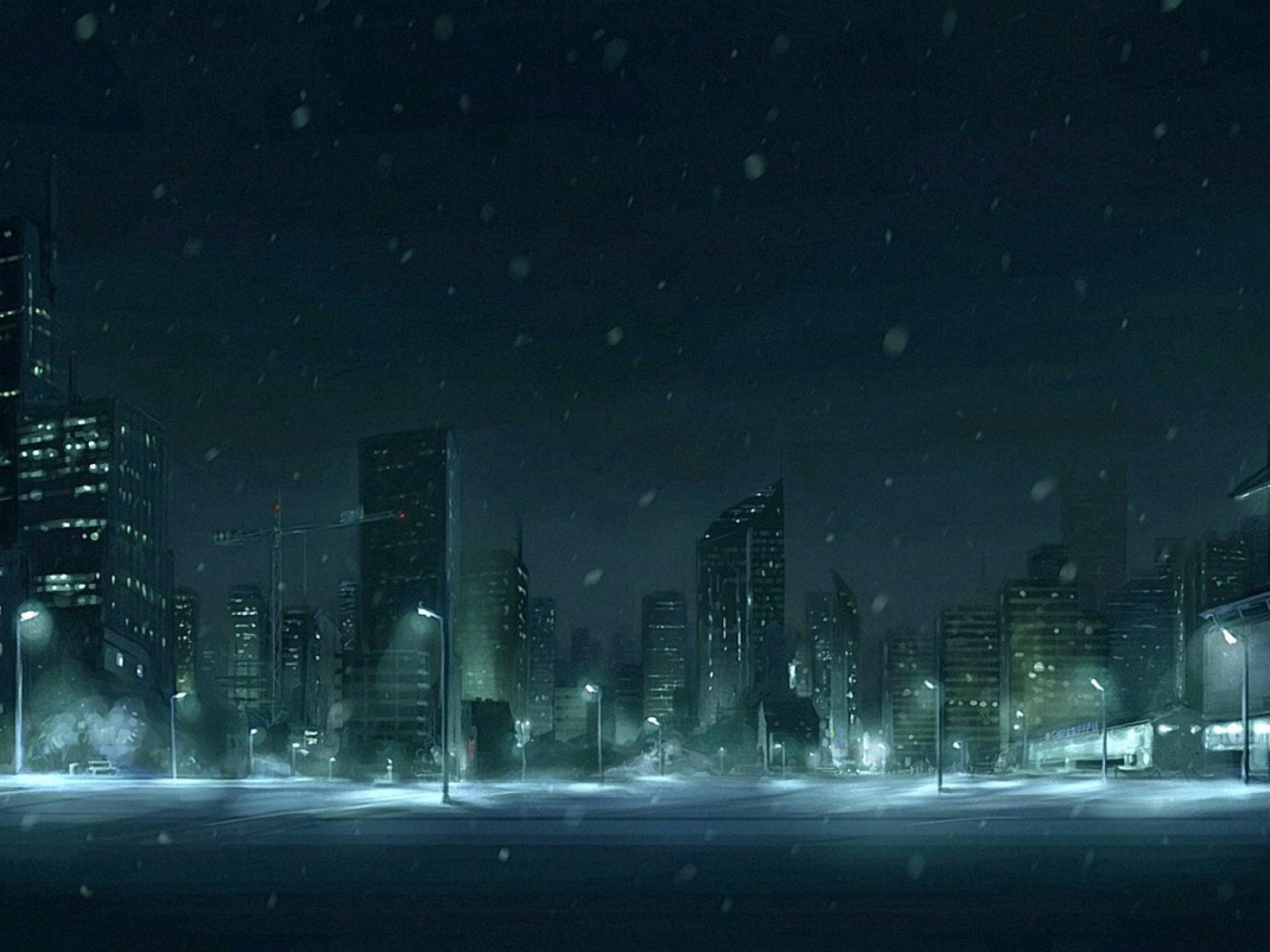 Wallpaper Snow in the night city