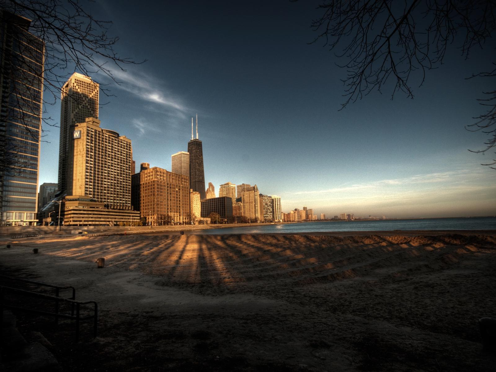 Wallpaper Night, Night city, Chicago, Skyscraper