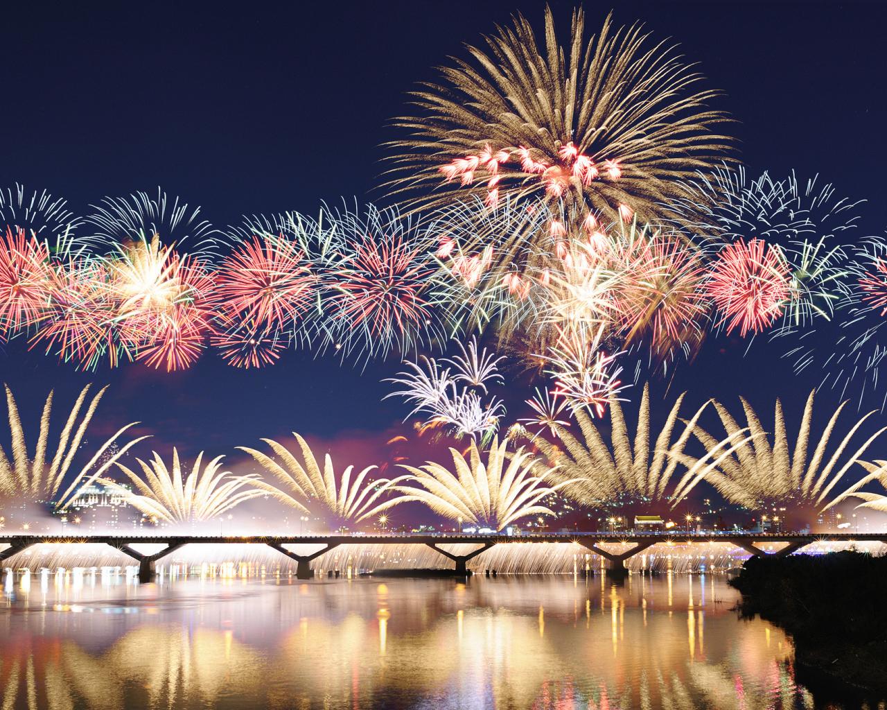 » Wallpaper Fireworks over the bridge