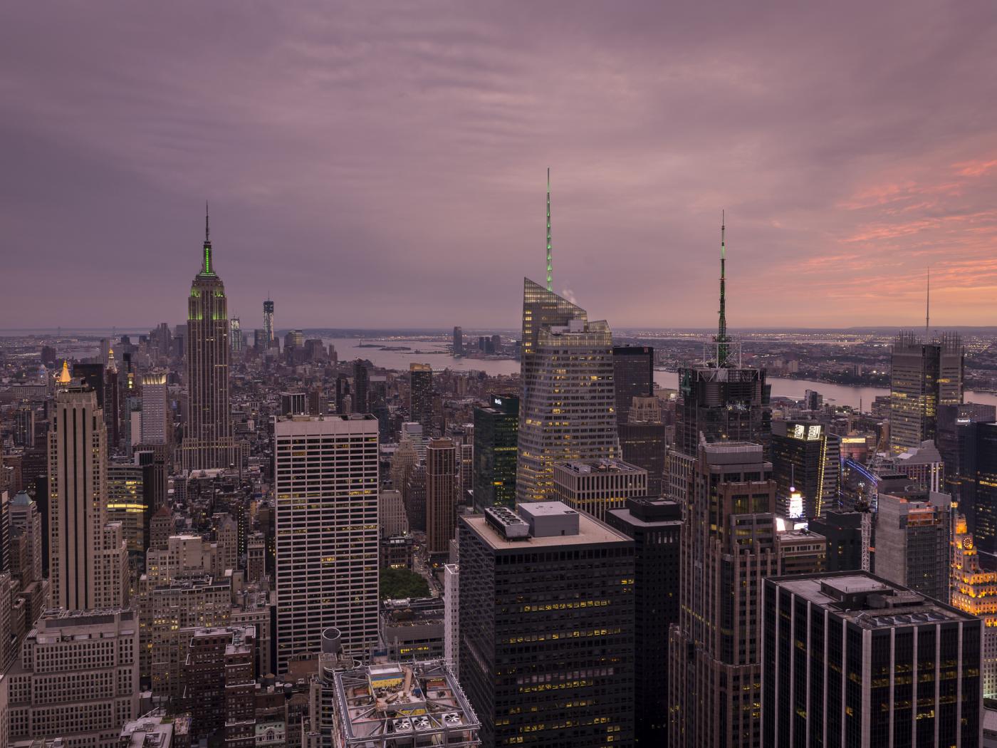 Wallpaper Sunset reflected in the glass skyscrapers of New York
