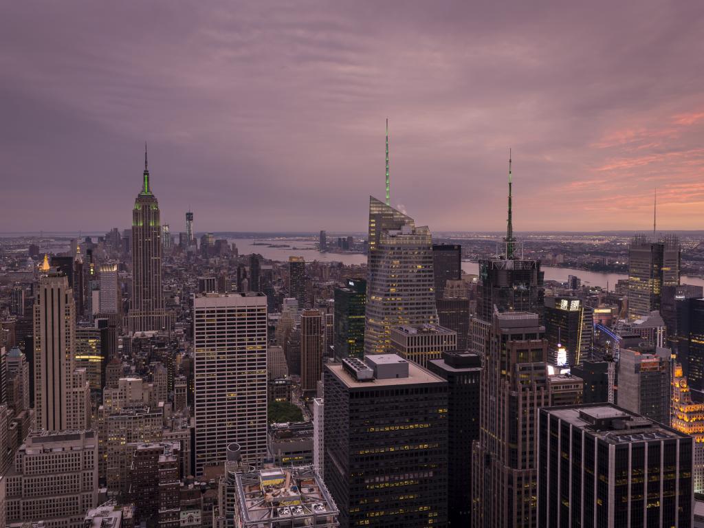 Wallpaper Evening lights in the skyscrapers of New York