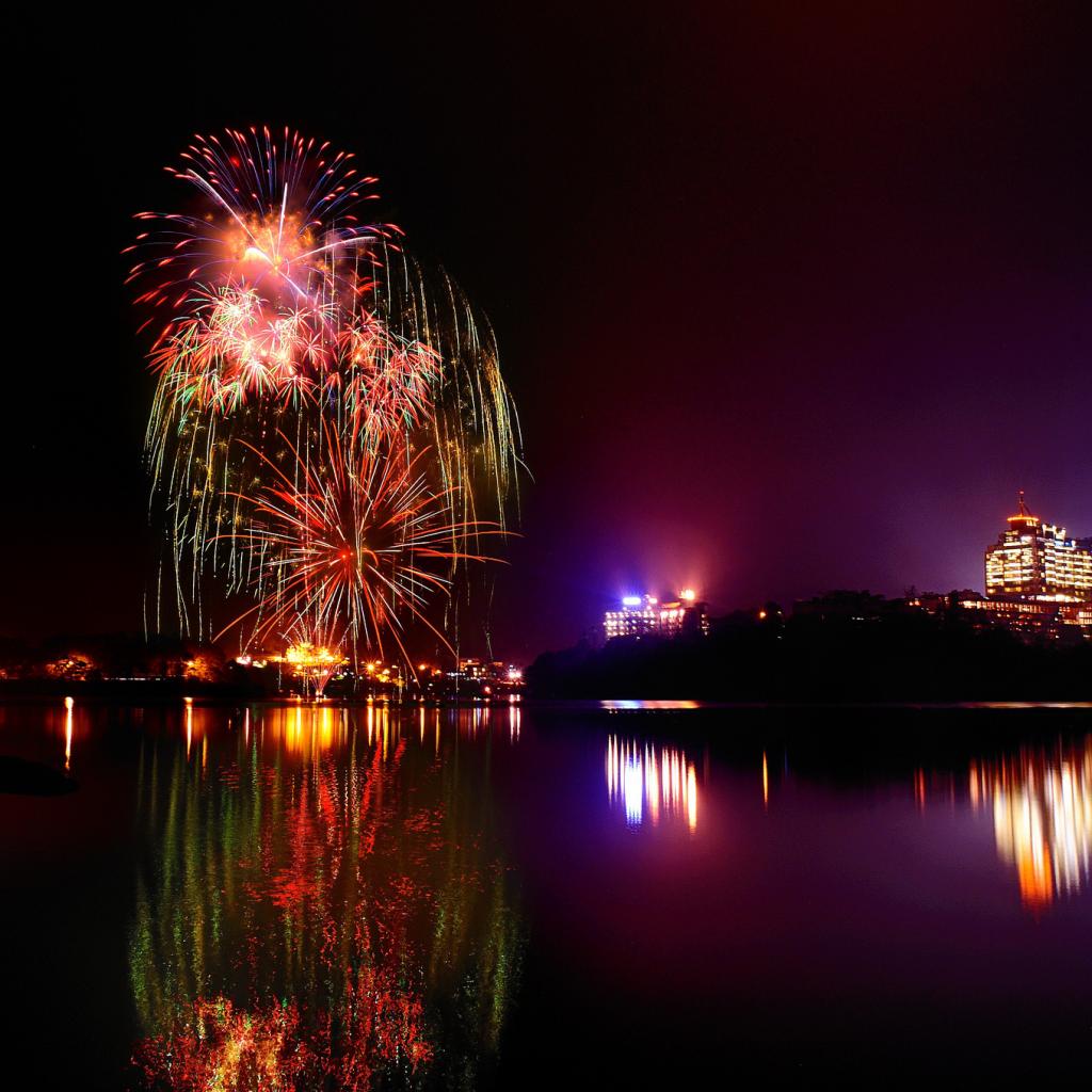 Wallpaper Reflection of fireworks in the lake