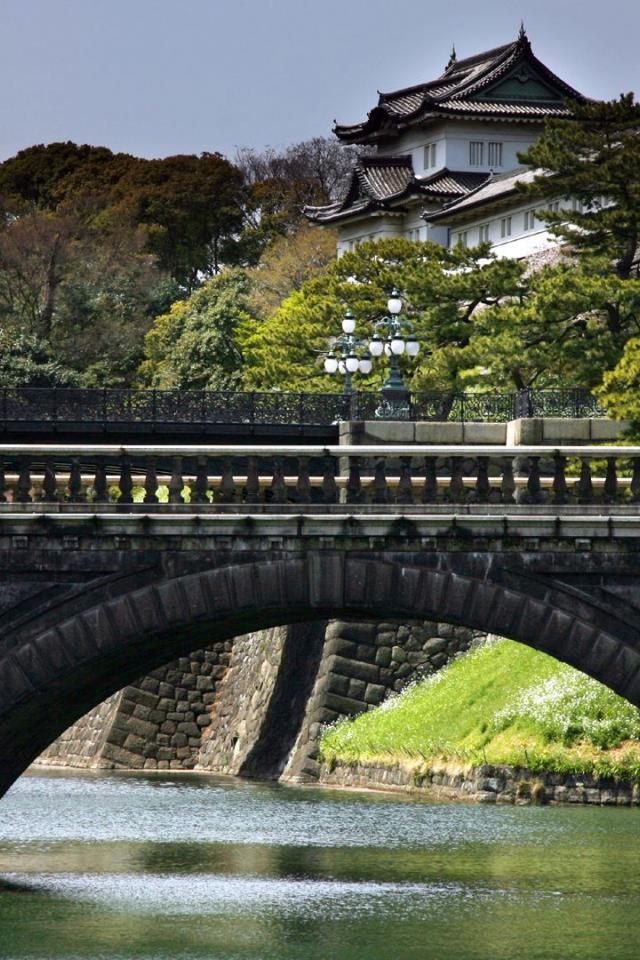 Wallpaper Japanese architecture with bridge