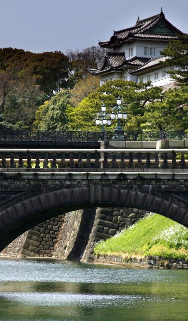 Wallpaper Japanese architecture with bridge
