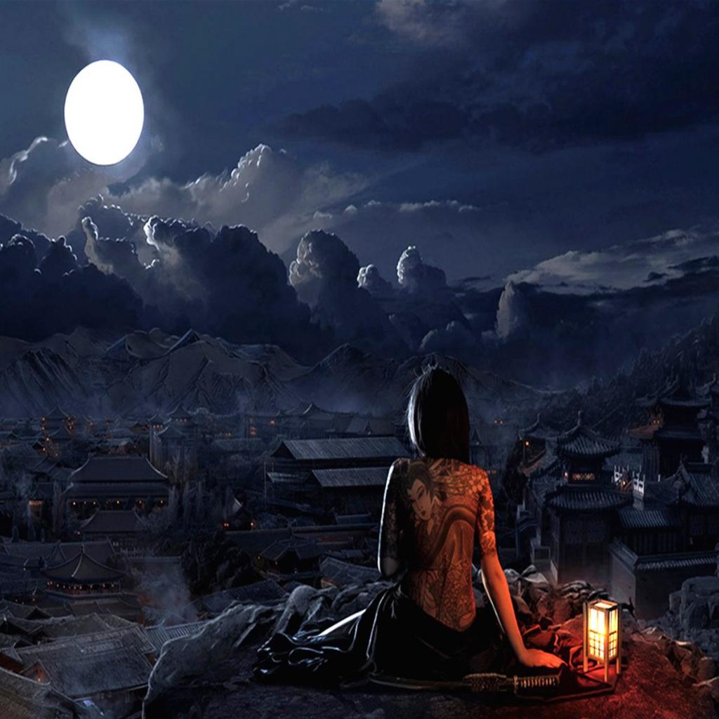 Wallpaper Girl under the big moon