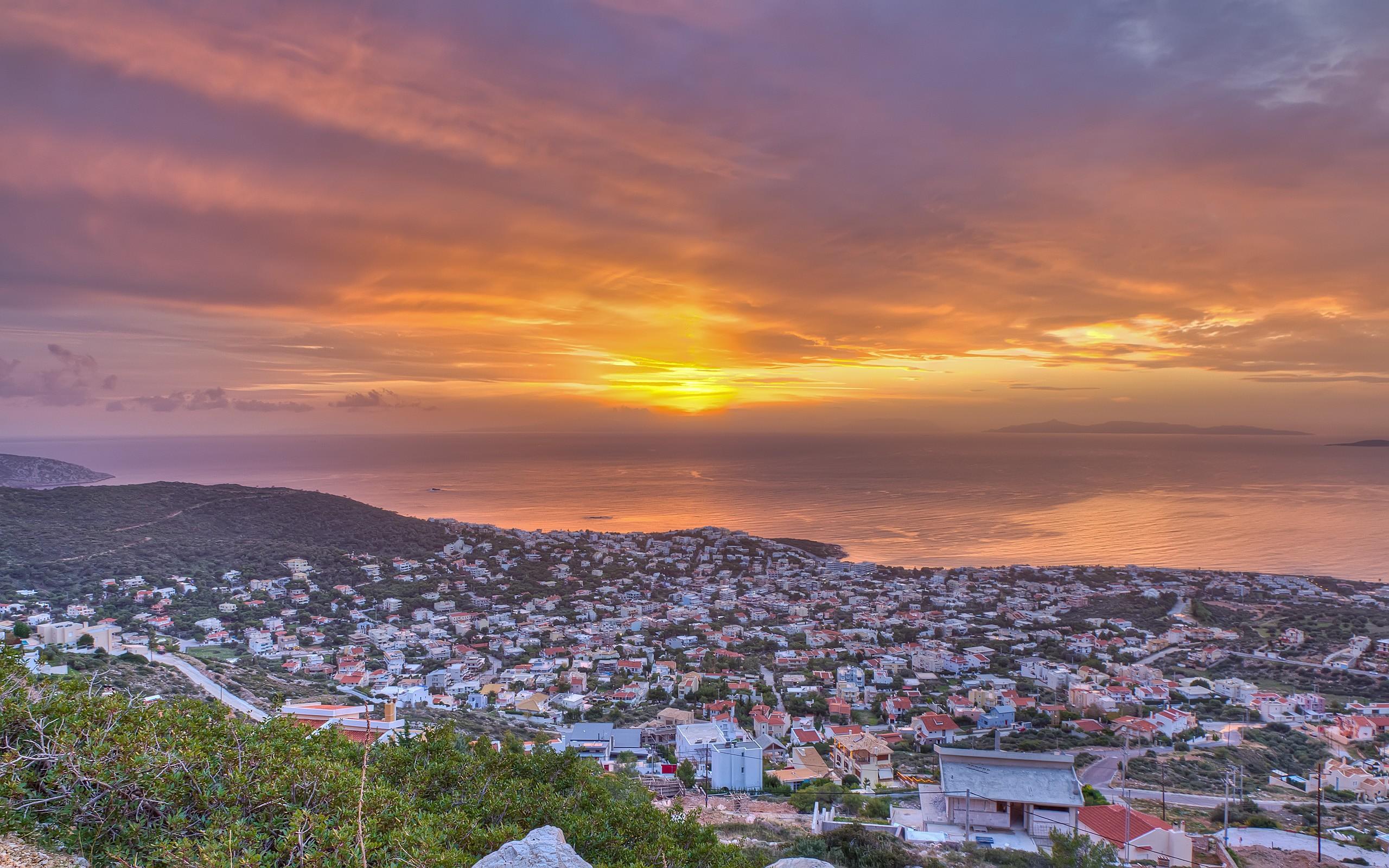 Wallpaper Greek city by the sea