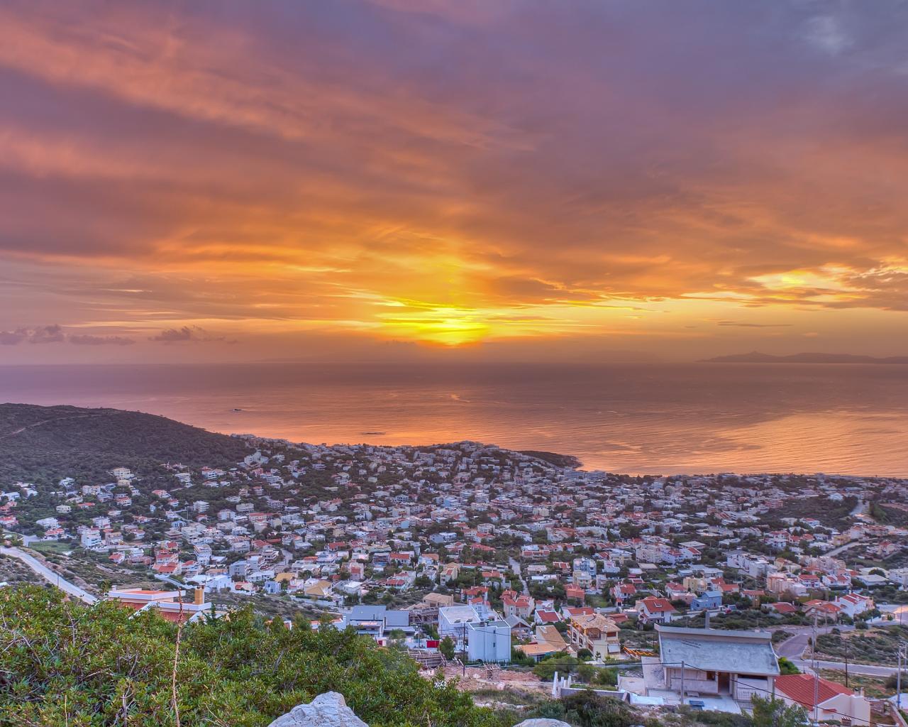 Wallpaper Greek city by the sea