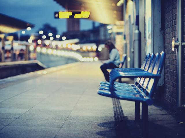 Wallpaper Blue benches on the street