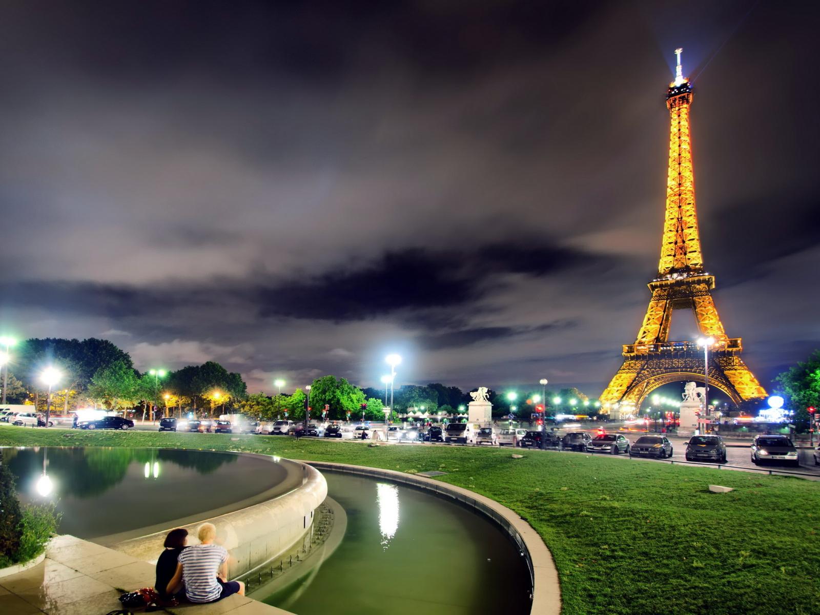 Wallpaper Cute couple in night Paris