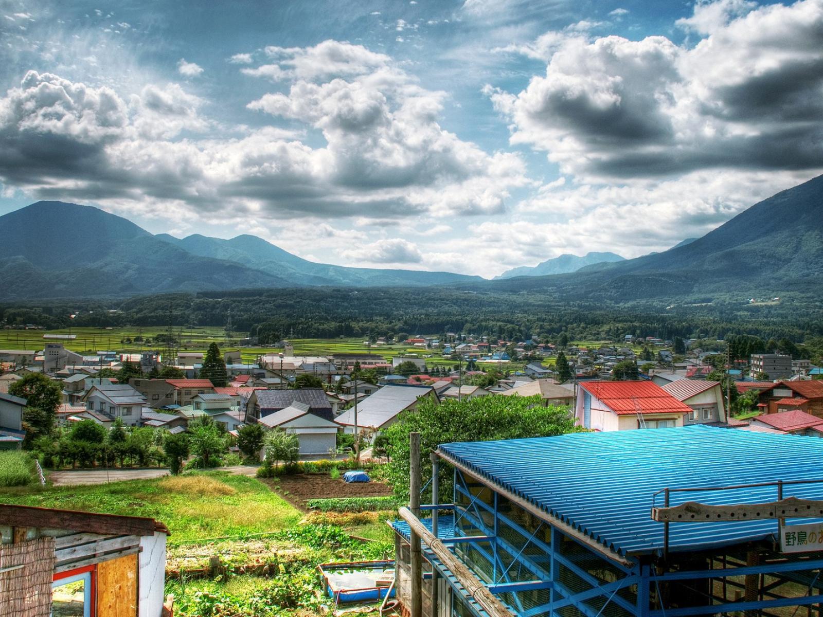 Wallpaper The town in the valley of the mountains