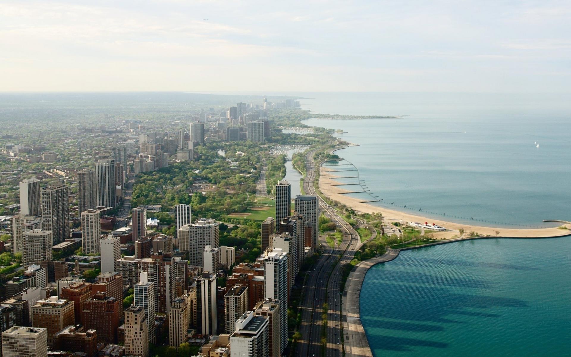 Wallpaper City landscape on the shore of the sea