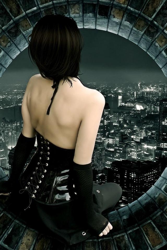 Wallpaper A girl looks at the city