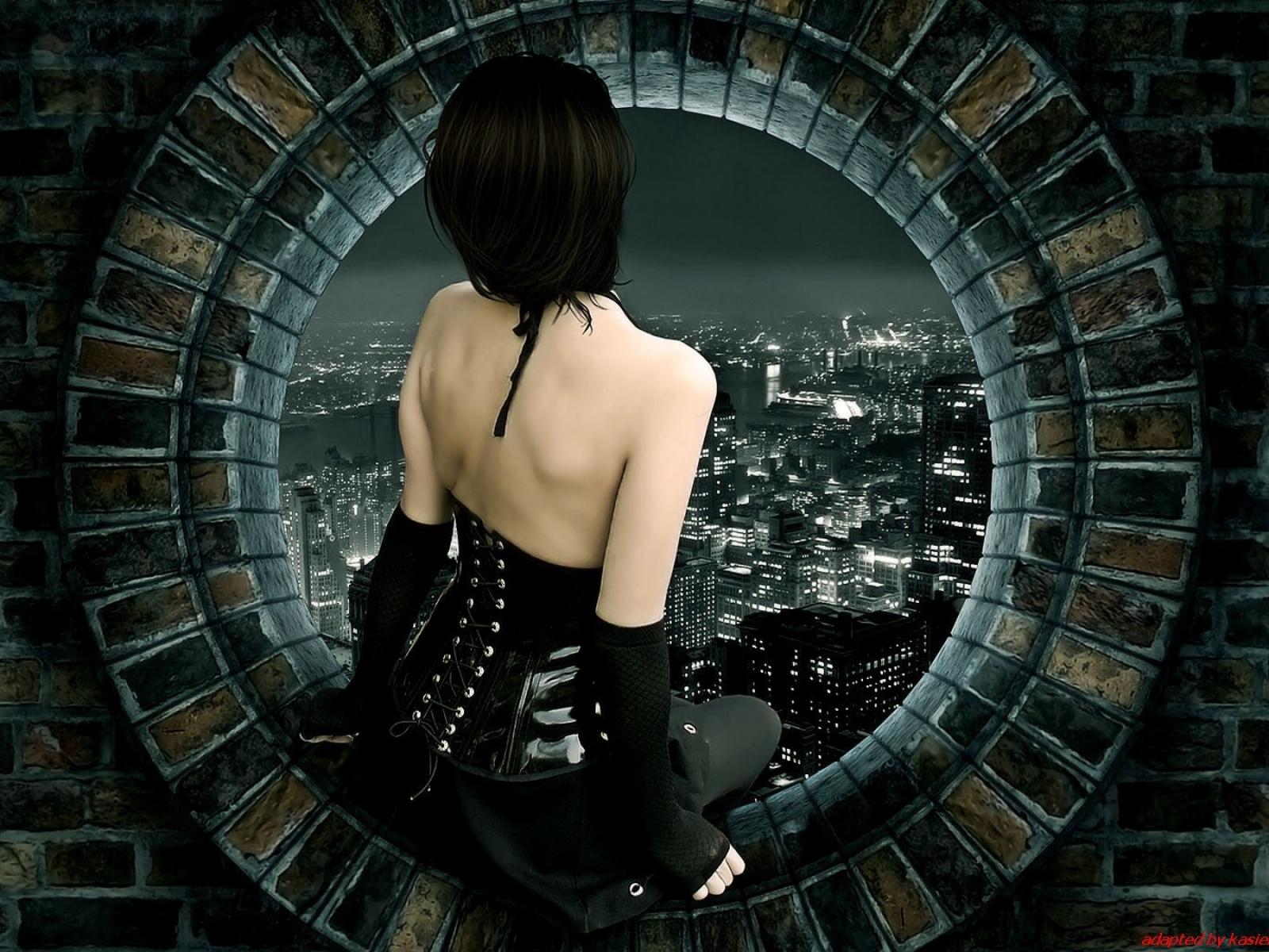 Wallpaper A girl looks at the city