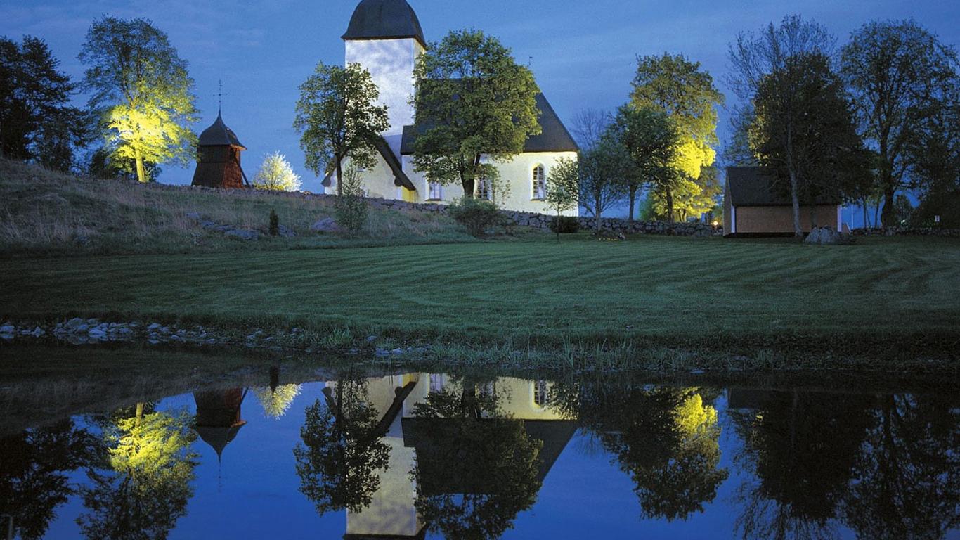Wallpaper Church by lake