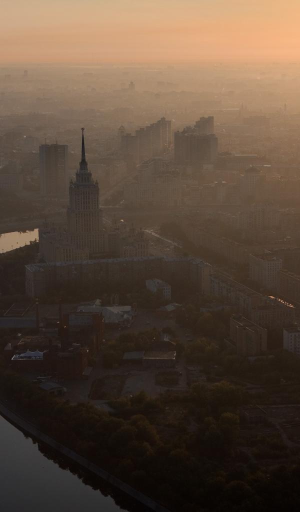 Wallpaper Moscow, Fog, Sunrise, Hot morning, Morning, Moskva river, Dawn, Relax