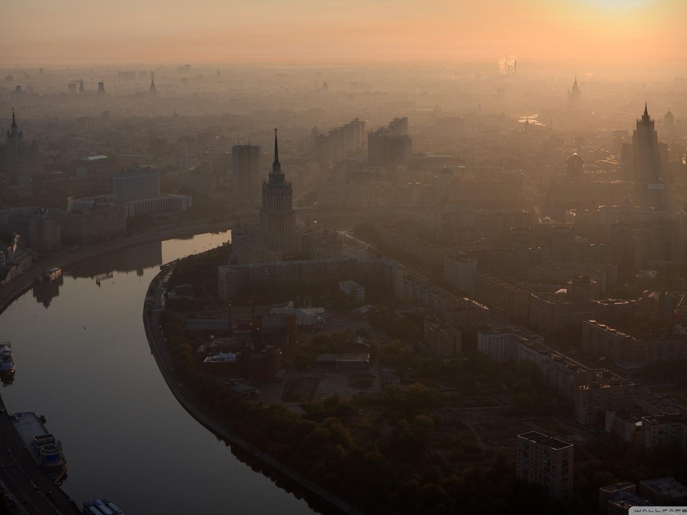 Wallpaper Moscow, Fog, Sunrise, Hot morning, Morning, Moskva river, Dawn, Relax