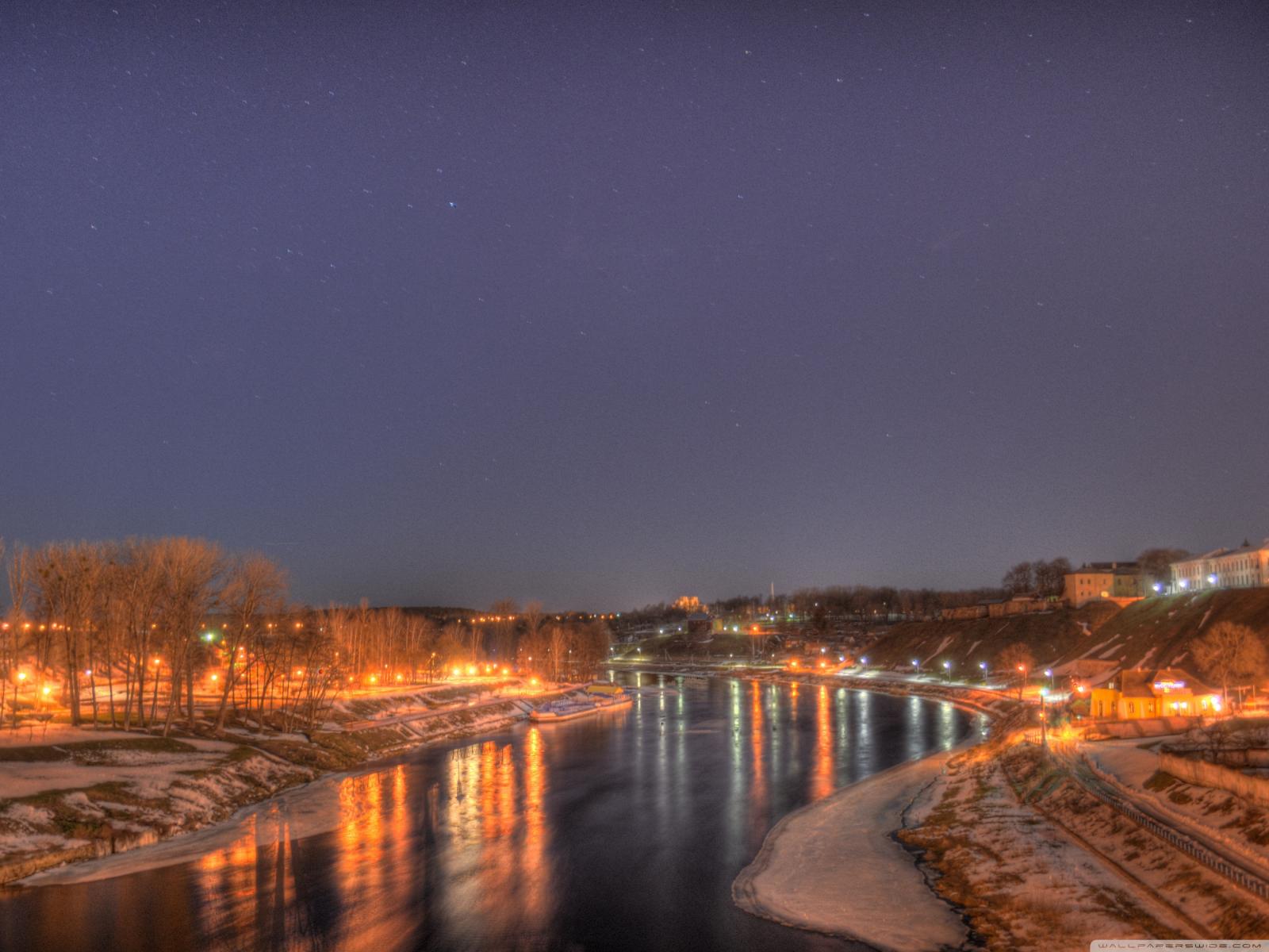 Wallpaper Lake, Lights, House, Sweden, Relax
