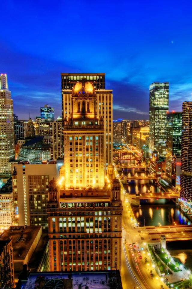 Wallpaper Night city, Lights, Blue sky, Chicago, Skyscraper