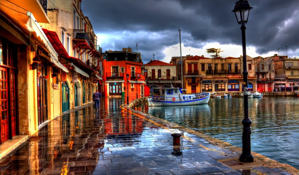 Wallpaper Old town, Pier, Boat