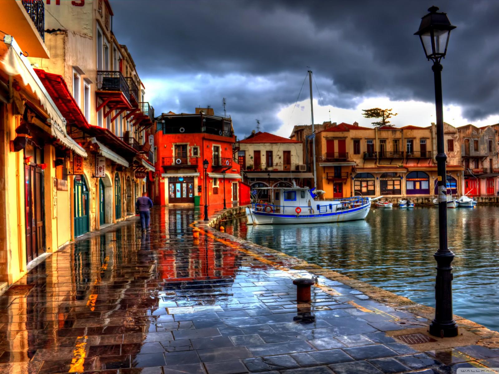 Wallpaper Old town, Pier, Boat
