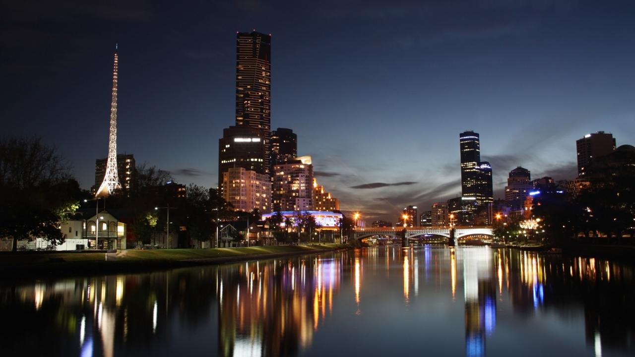 Wallpaper The reflection of the city lights in the river