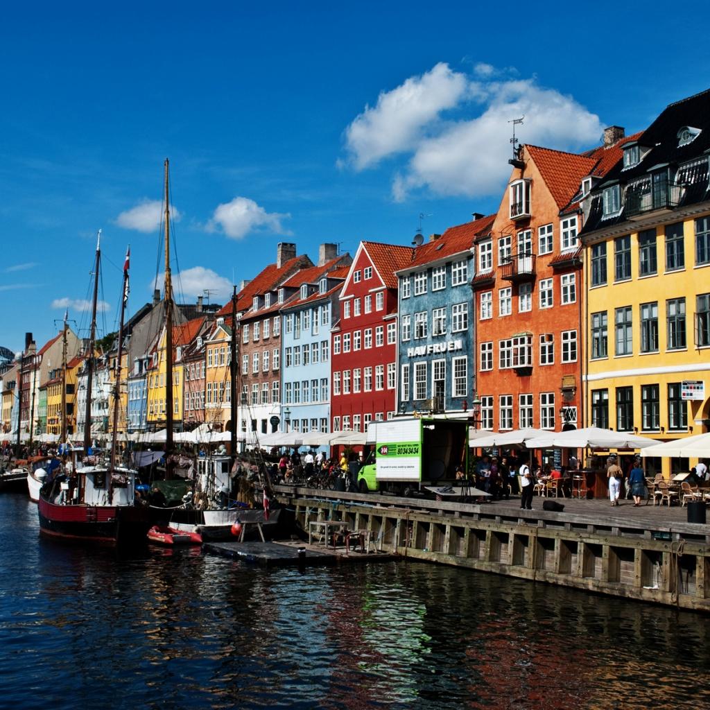 Wallpaper Evening lights of the houses of the city of Copenhagen at the pier, Denmark