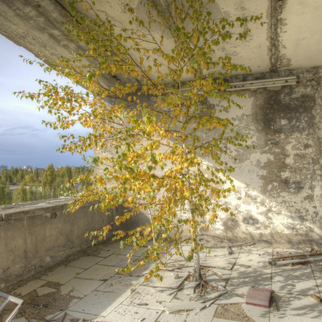 Wallpaper Tree inside the building in Pripyat