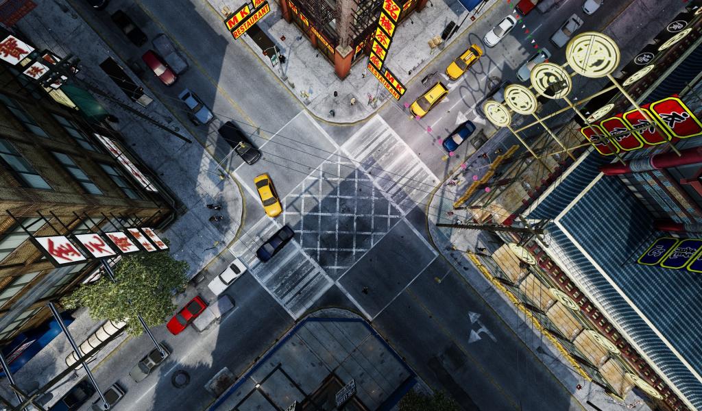 Wallpaper Busy intersection in Chinatown