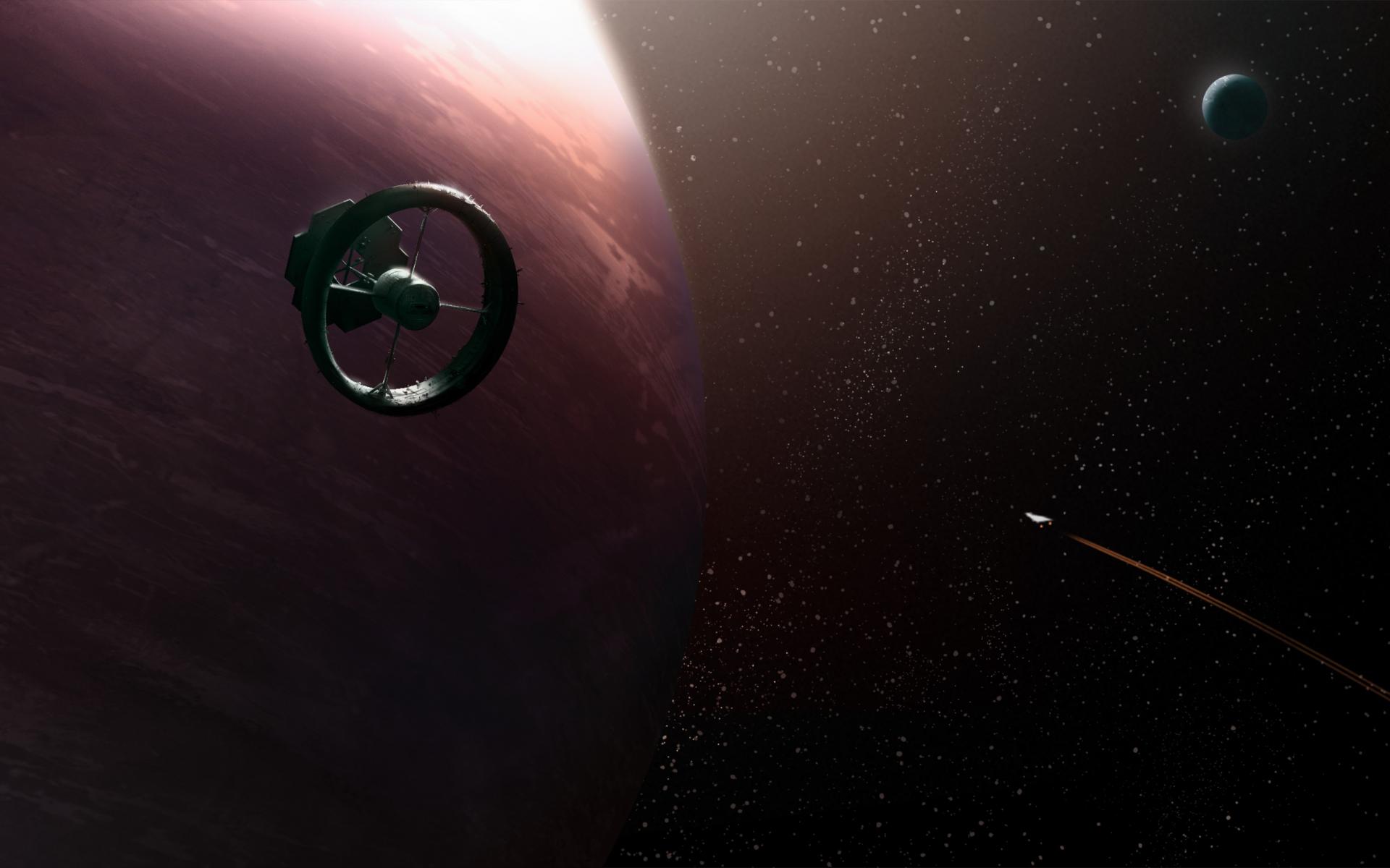Wallpaper The station is in orbit of the planet, the game Elite Dangerous