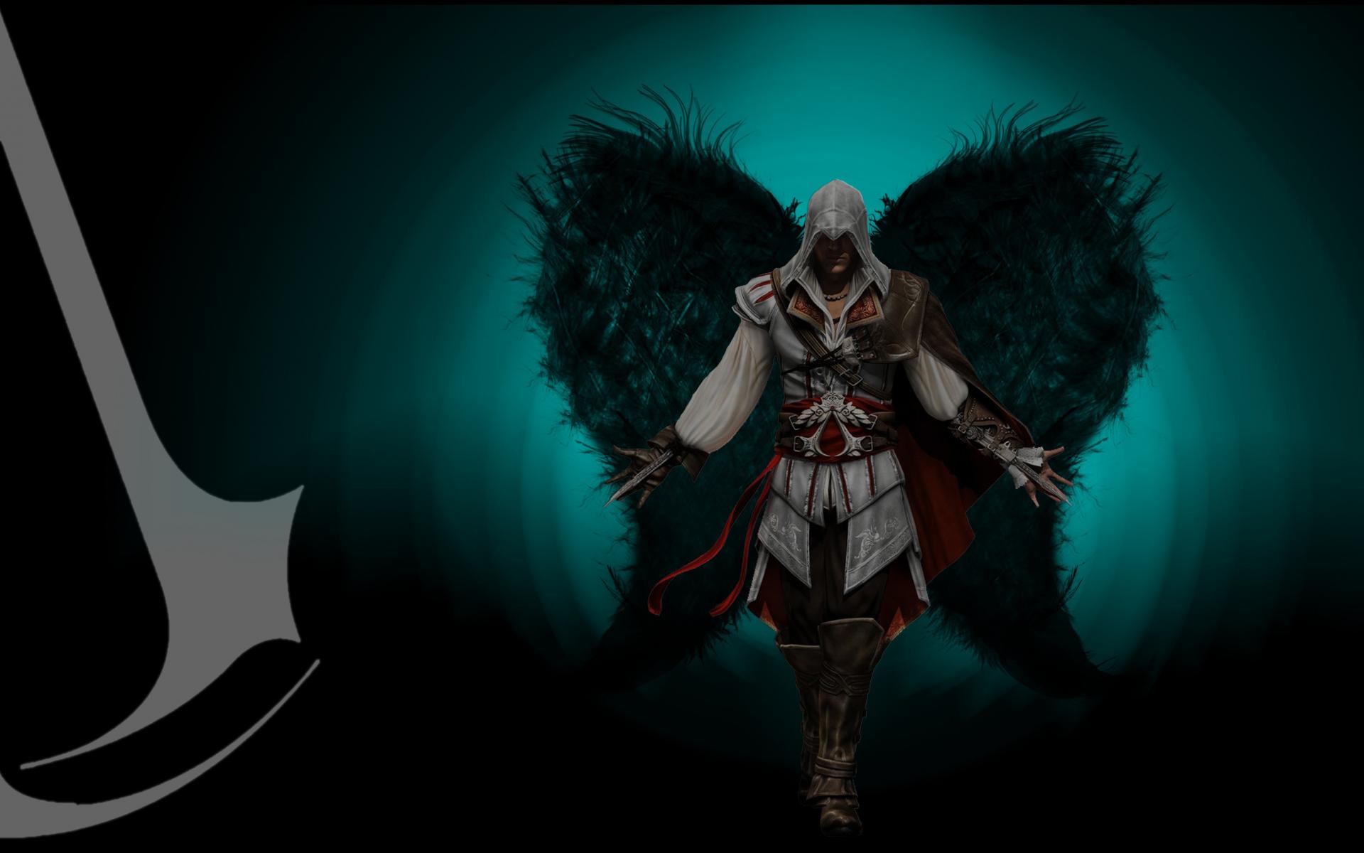 Wallpaper Angel with green wings, the game Assassin`s Creed
